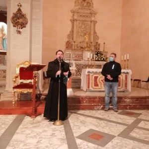 In quell’anno, dentro questa chiesa, si portò in scena con degli adolescenti la prima recita natalizia, anticamera della successiva rappresentazione che coinvolse e cementò i giovani ’90, (cosi si chiamavano in quell’anno) dai quali venne fuori, fu ideata, la manifestazione del Presepe Vivente che tutti conosciamo. Sempre in questa chiesa resta forte un’eco lontana dell’operato di Padre Leonardo e del meccanico a futuristico presepe che venne realizzato sulla fine degli anni Quaranta e così oggi, 13 febbraio 2021, dopo trent’anni, eccoci riuniti, grazie alla disponibilità del parroco, per dare seguito alla premiazione. Il presidente Tonino, dopo i rituali saluti e ringraziamenti, chiama al piccolo Giovanni Zona quale rappresentante della famiglia per ricevere la targa ricordo e il premio in denaro per il presepe vincitore della sezione “Il presepe per le vie del borgo”.