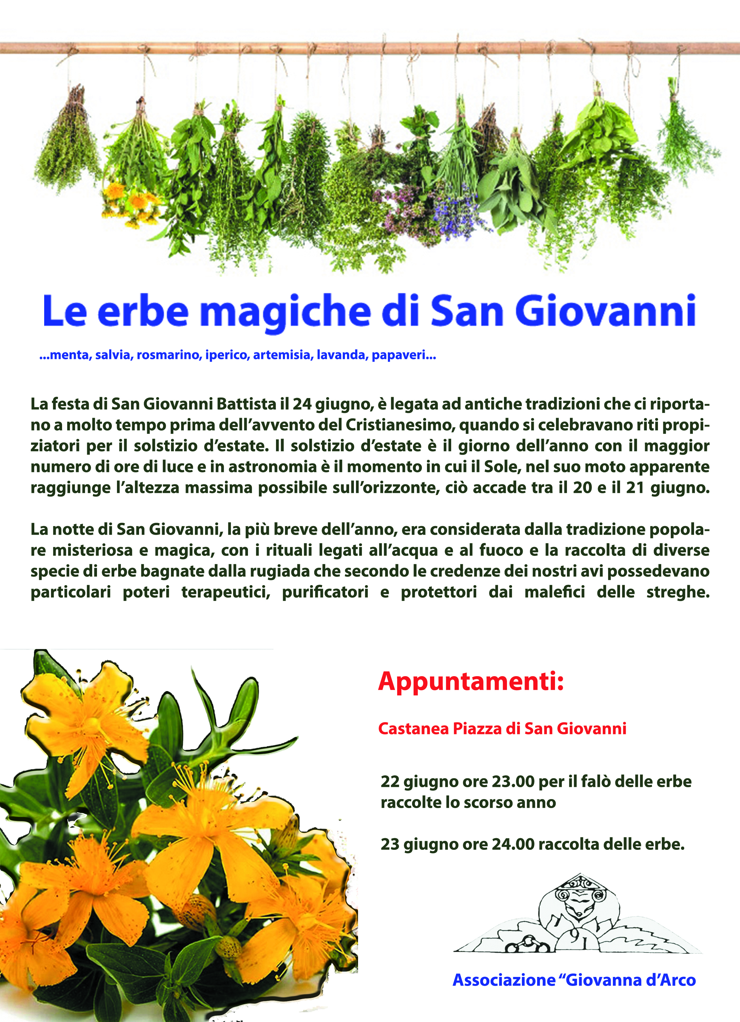 22 e 23 giugno le erbe magiche di san Giovanni, falò e raccolta.