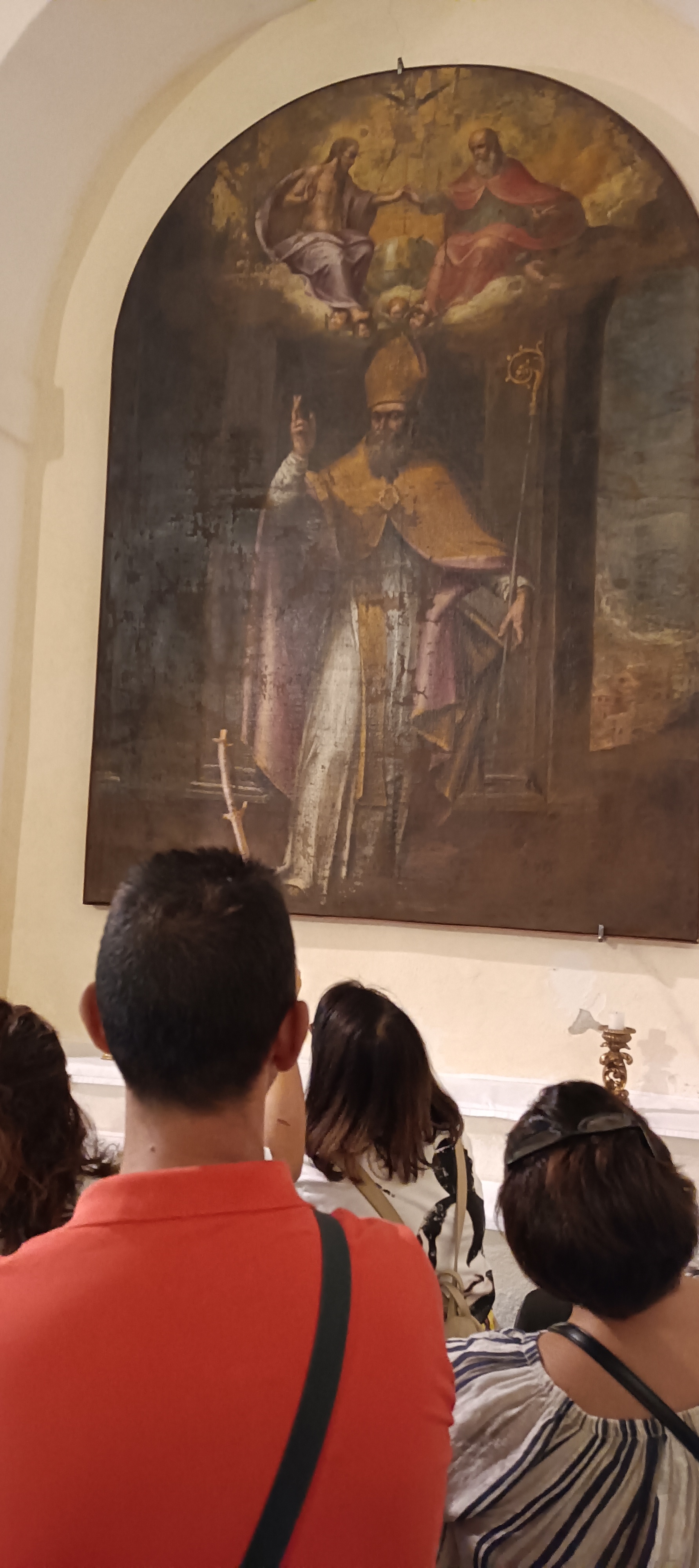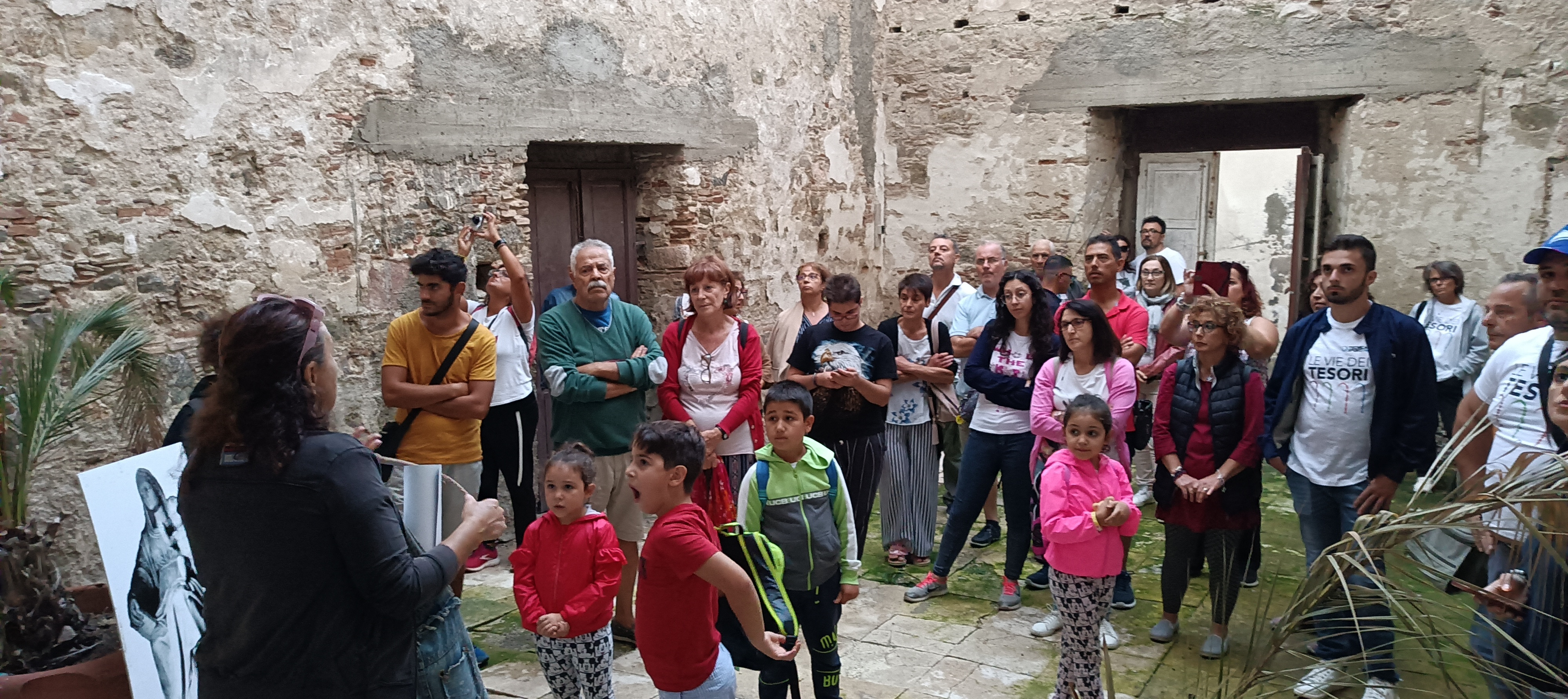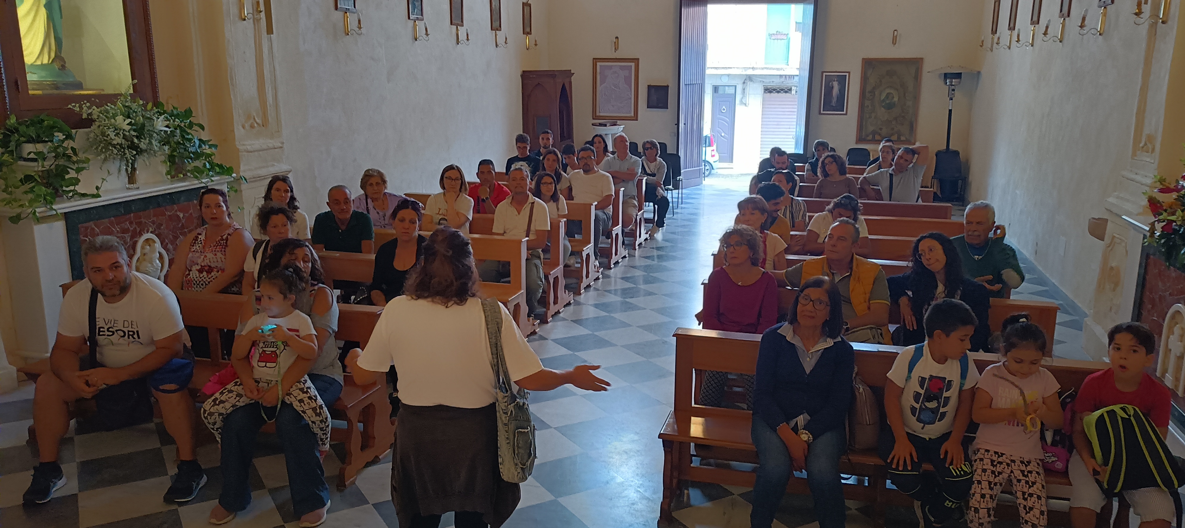 Tra vicoli e strettoie, con fregi e palazzi antiquati, la prima sosta ha riguardato la Chiesa di Santa Caterina con i due quadri recentemente restaurati del Sant’Agostino di Gaspare Camarda e del San Michele di Antonio Patti; altrettanto importanti sono il pulpito recuperato dalla chiesa di Gesù e Maria (oggi inesistente) e il Trionfo dipinto sul tondo della cupola probabilmente dalla maestria di Giovanni Tuccari.