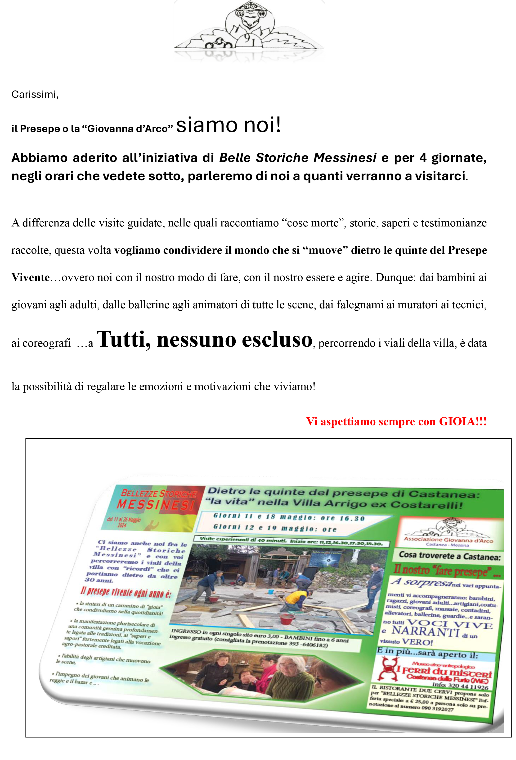 “Sarebbe bello se tanti di noi donassero, raccontandola semplicemente e liberamente, la loro esperienza nella Giovanna d’Arco, chi più e chi meno ha poca importanza, in qualunque momento e per qualsiasi attività…vi aspettiamo!”.