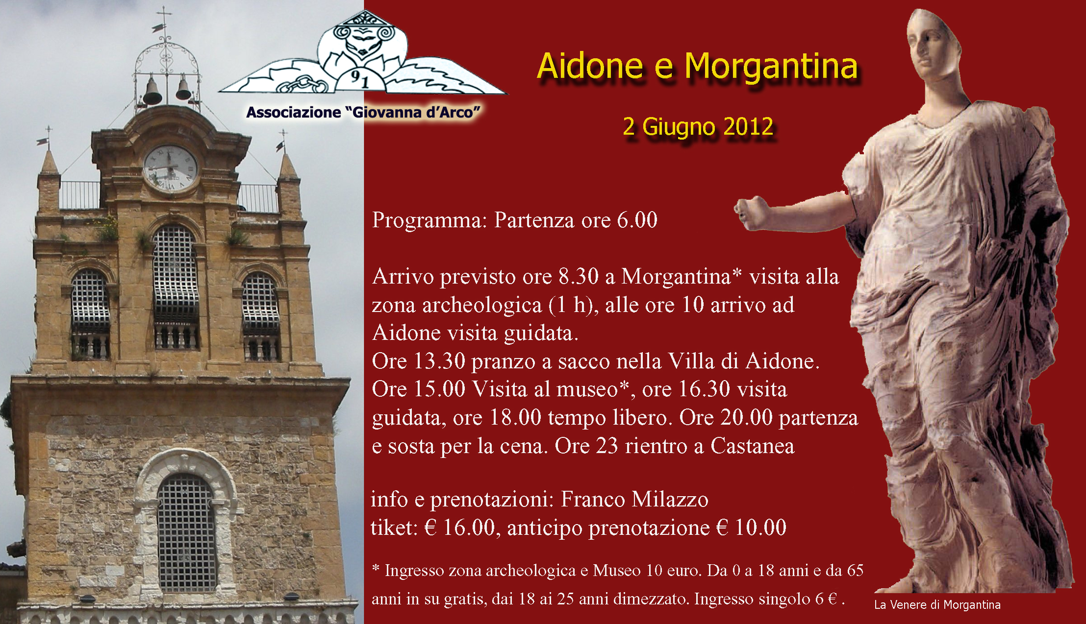 In 56 siamo partiti per il consueto appuntamento annuale: la Gita. La destinazione era nel cuore della Sicilia e ci siamo catapultati oltre 2000 anni fa fra i reperti e le vestigia del prestigioso e unico sito di Morgantina. Tutto è stato semplicemente bello. La ” Giovanna d’Arco” si è mossa all’unisono: un gruppo di cuori cosi diversi si sono amalgamati per trascorrere un’esperienza particolare. Per l’intera giornata siamo stati accompagnati fra gli scavi. i musei e le chiese da una magistrale guida che ci ha trasmesso non solo l’interesse culturale del sito ma l’entusiasmo di chi ama e promuove la sua terra.