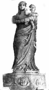 Opera scultorea d’ignoto, in marmo bianco, risalente al XVI sec., rievoca i canoni del manierismo tosco – romano, divulgato in Sicilia e soprattutto a Messina, (tappa obbligatoria del Mediterraneo), da collaboratori di Michelangelo e dell’Ammannati. Conservata oggi nella chiesa delSS. Rosario di Castanea, ma la sua originaria ubicazione la vedeva esposta nella omonima chiesa del Tonnaro. Un’opera, questa, che dimostra di avere un’impostazione conservatrice, poiché l’artista non è riuscito a staccarsi dal peso del classicismo inteso come modello, allo stesso tempo si legge la volontà di rappresentare un plasticismo decorativo (vedi il mantello ricco di motivi floreali), castigato però dalle forme. La composizione, poggiante su una base ottagonale, ove in ogni lato vi è raffigurata una testa d’ angioletto, è statica nella figura della Madonna, ma morbidamente modellata nel panneggio dalle pieghe armonicamente cadenzate della veste e del manto della stessa, e leggermente mossa dalla gamba sinistra del bambino benedicente sorretto dal braccio sinistro della Vergine.